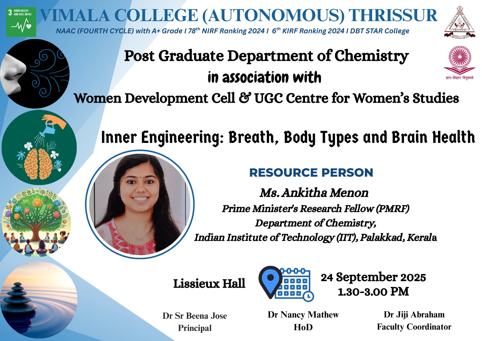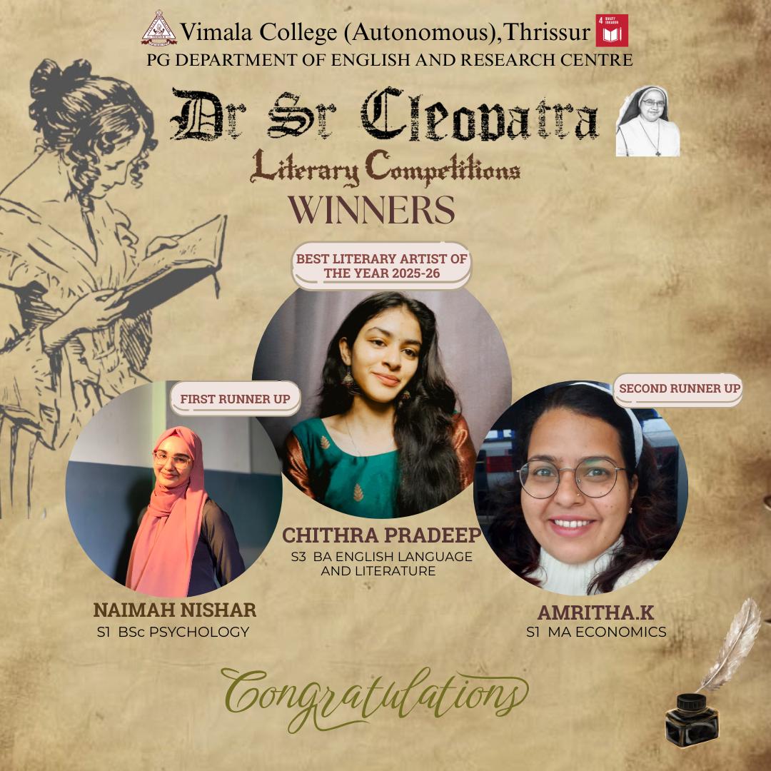 Sprawling over 29.6 acres of land and situated in the cultural capital of a state lauded for its rich heritage, Vimala College, Thrissur was set up as a citadel of education, enlightenment and progress of young women in 1967. Undying enthusiasm, visionary diligence and a passion to bring out change, defined, moulded and transformed the dream of the CMC Management into what the College has become today. In her 58th year of inception, Vimala stands high with her flag unfurled to glory and true to the ideals of her founders whose vision is extolled in the words: Our aim is the pursuit of intellectual and professional excellence for the total transformation of the human person for his/ her own enrichment and for the service of the society and the nation in the spirit of Jesus Christ.